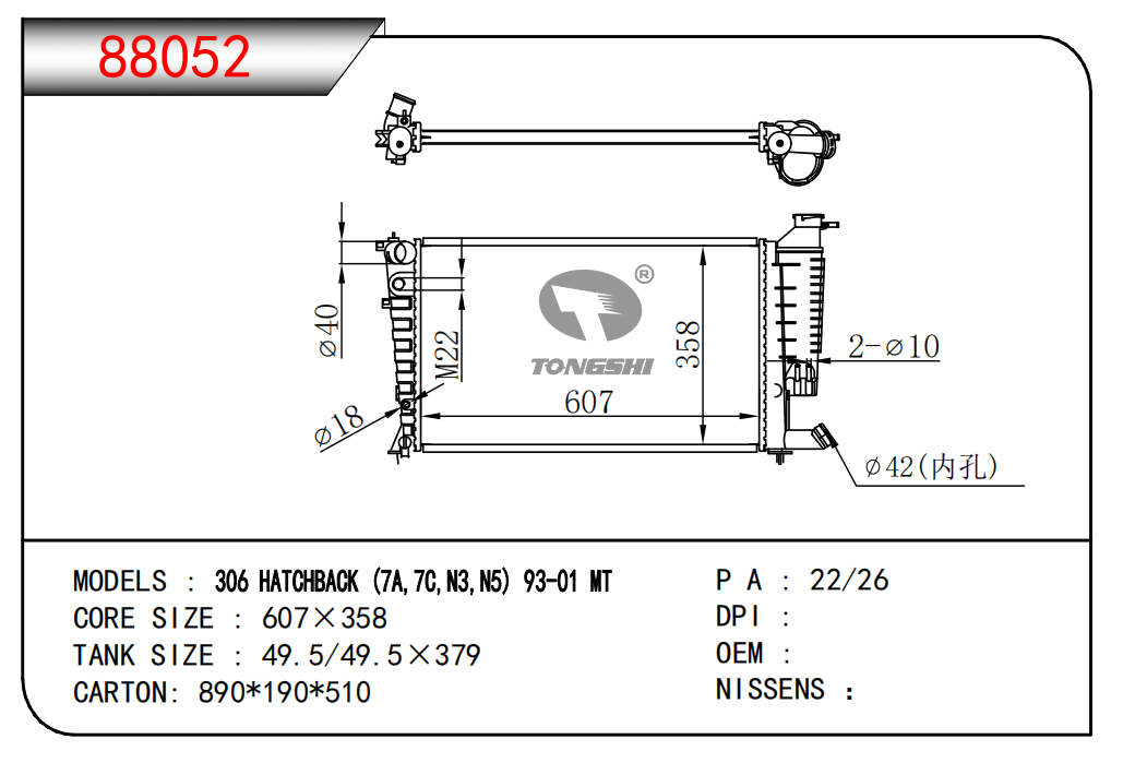 適用于寶馬 E30 320 i 82-93 AT散熱器OEM:1723 825/1719 261