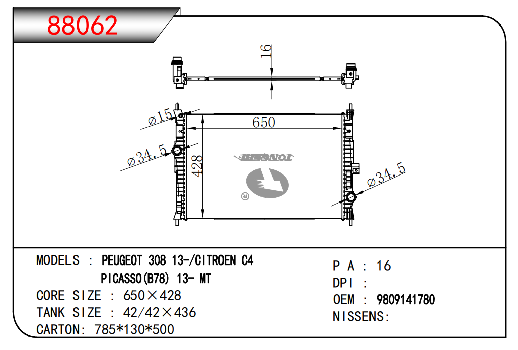 適用于奇瑞瑞虎(新款) MT散熱器 OEM : F1301000B1