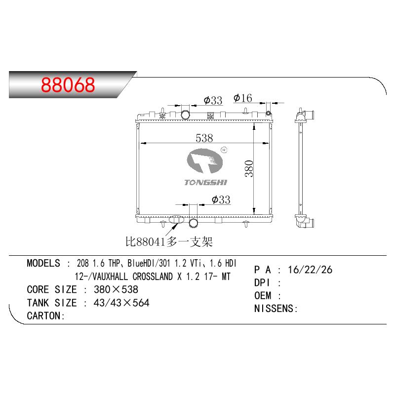 適用于奇瑞瑞虎(新款) MT散熱器 OEM : F1301000B1