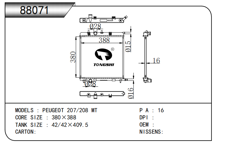 適用于奇瑞瑞虎(新款) MT散熱器 OEM : F1301000B1