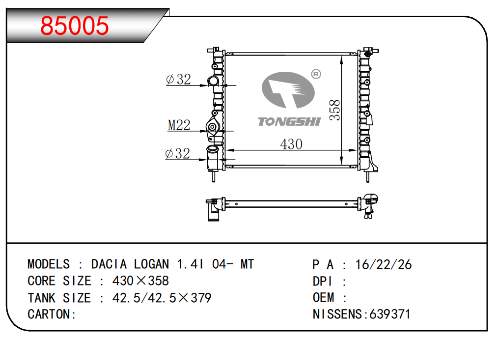 適用于奇瑞瑞虎(新款) MT散熱器 OEM : F1301000B1