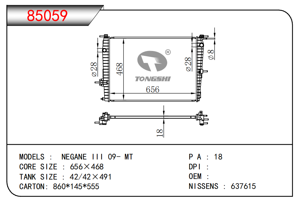 適用于奇瑞瑞虎(新款) MT散熱器 OEM : F1301000B1