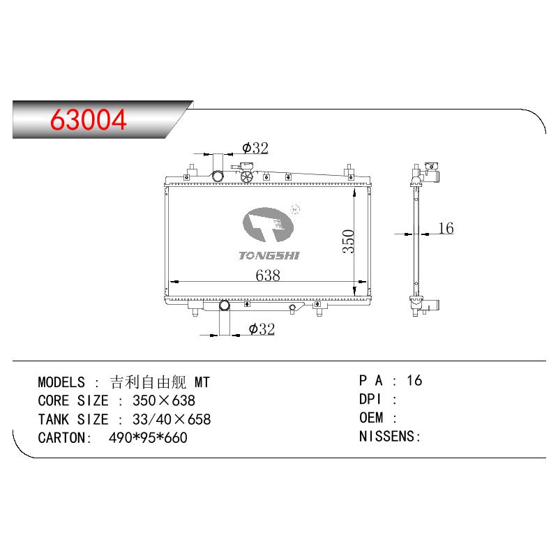 適用于奇瑞瑞虎(新款) MT散熱器 OEM : F1301000B1