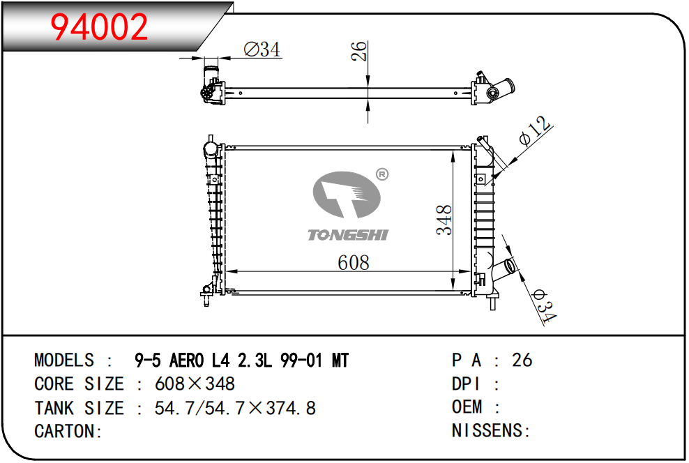 適用于奇瑞瑞虎(新款) MT散熱器 OEM : F1301000B1