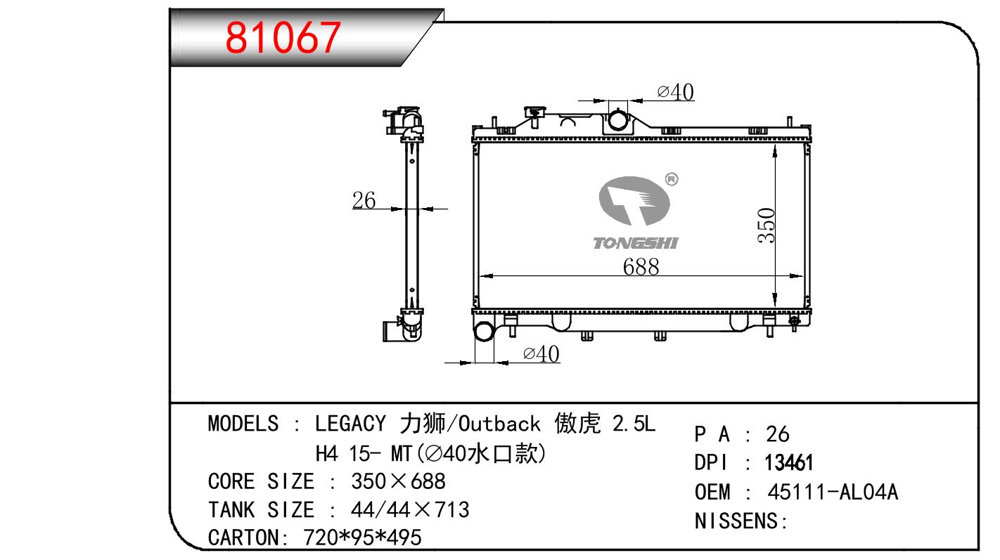 適用于奇瑞瑞虎(新款) MT散熱器 OEM : F1301000B1