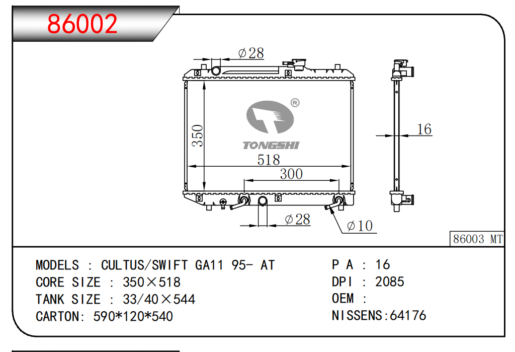 適用于寶馬 E30 320 i 82-93 AT散熱器OEM:1723 825/1719 261