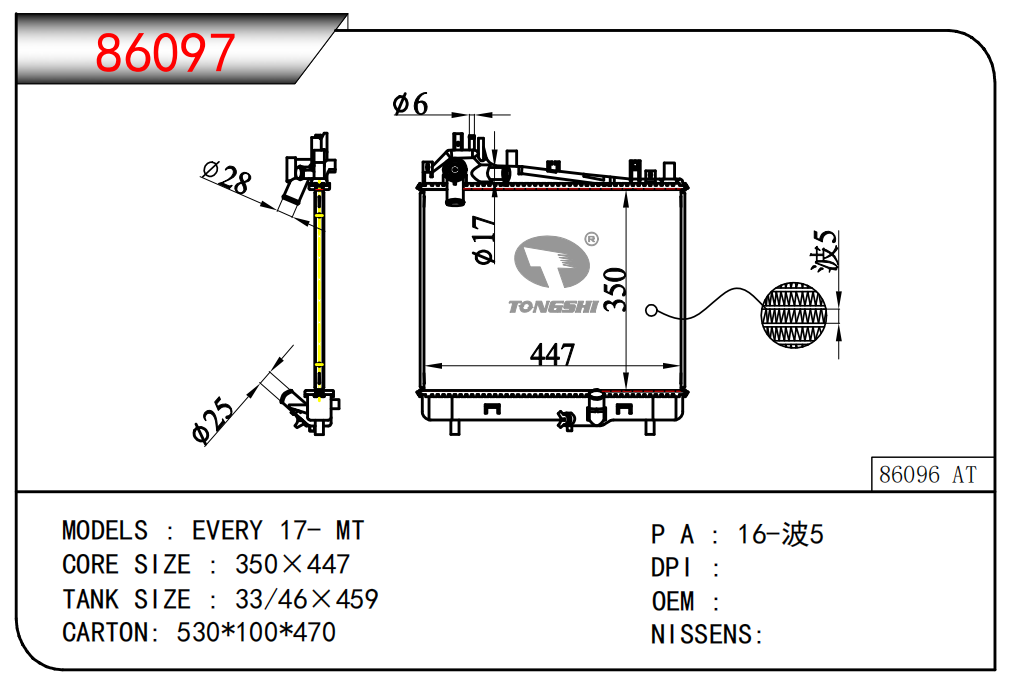 適用于寶馬 E30 320 i 82-93 AT散熱器OEM:1723 825/1719 261
