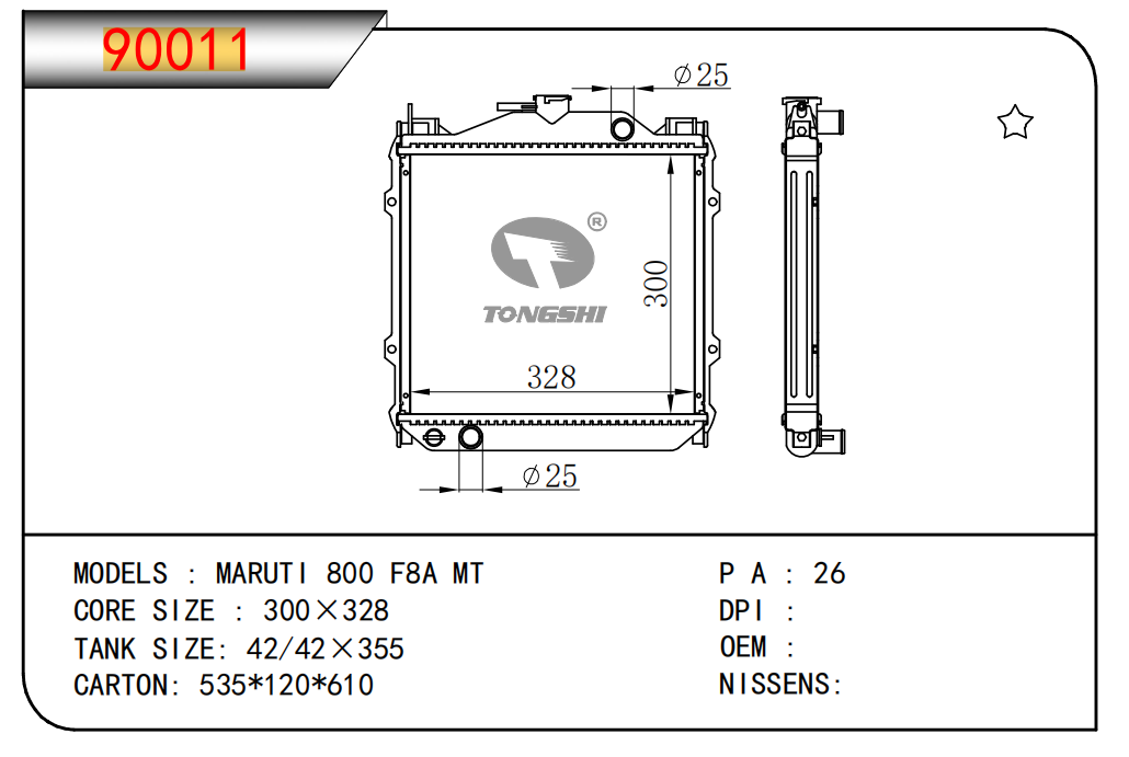 適用于奇瑞瑞虎(新款) MT散熱器 OEM : F1301000B1