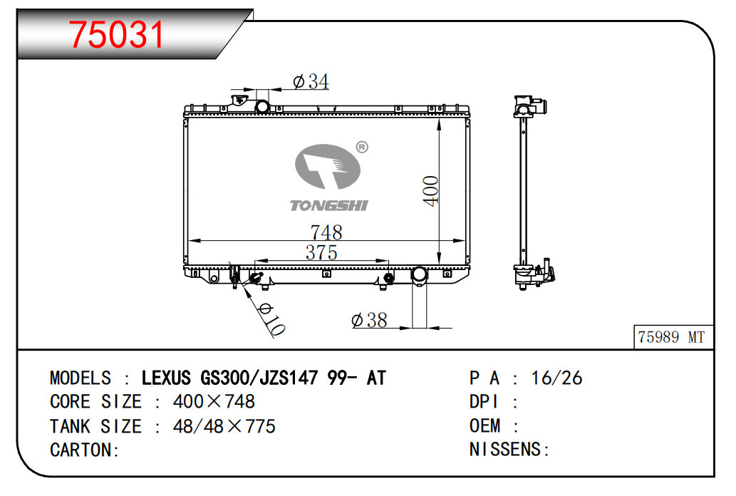 適用于寶馬 E30 320 i 82-93 AT散熱器OEM:1723 825/1719 261