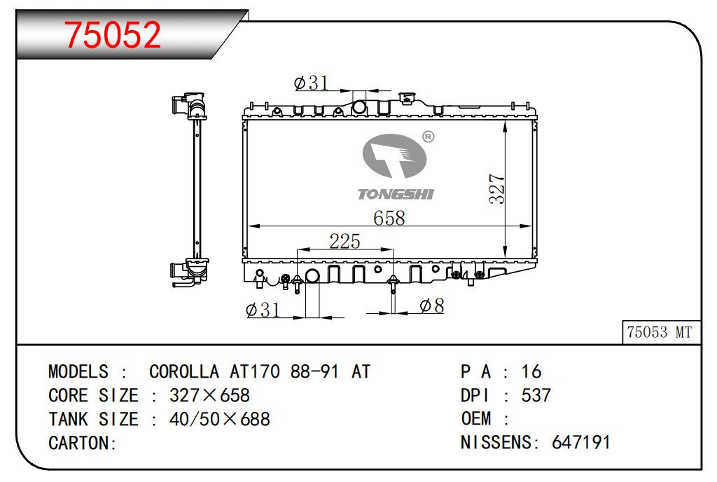 適用于寶馬 E30 320 i 82-93 AT散熱器OEM:1723 825/1719 261