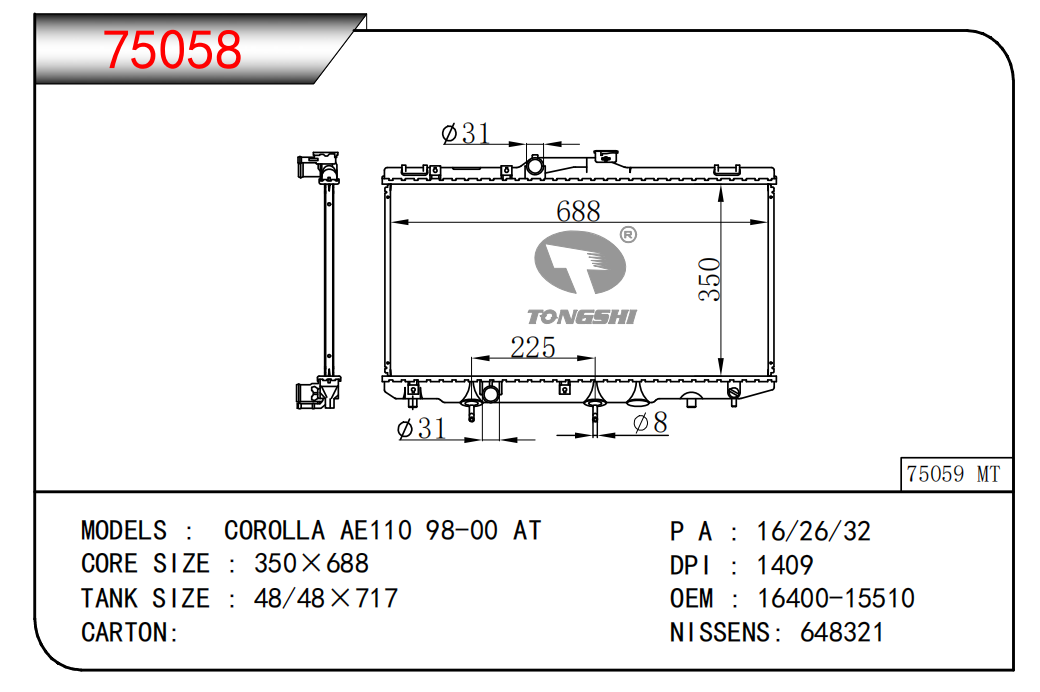 適用于寶馬 E30 320 i 82-93 AT散熱器OEM:1723 825/1719 261