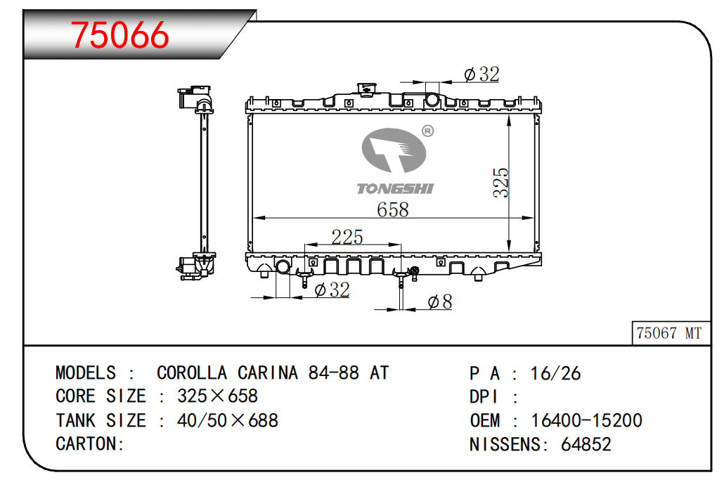 適用于寶馬 E30 320 i 82-93 AT散熱器OEM:1723 825/1719 261