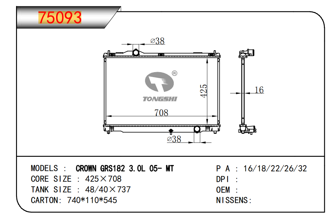 適用于寶馬 E30 320 i 82-93 AT散熱器OEM:1723 825/1719 261