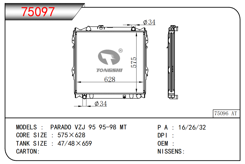 適用于寶馬 E30 320 i 82-93 AT散熱器OEM:1723 825/1719 261