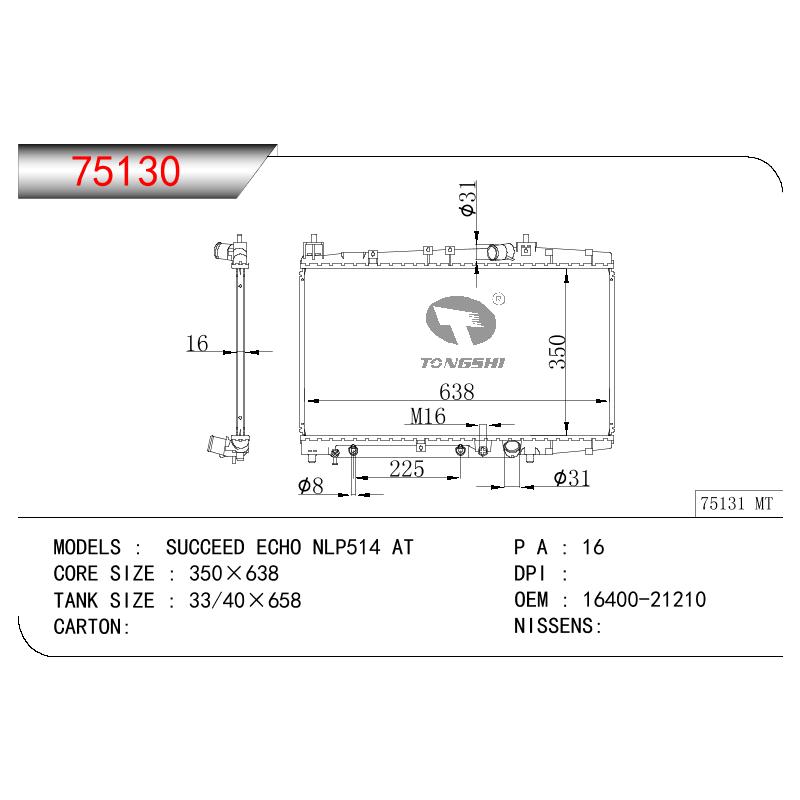 適用于奇瑞瑞虎(新款) MT散熱器 OEM : F1301000B1