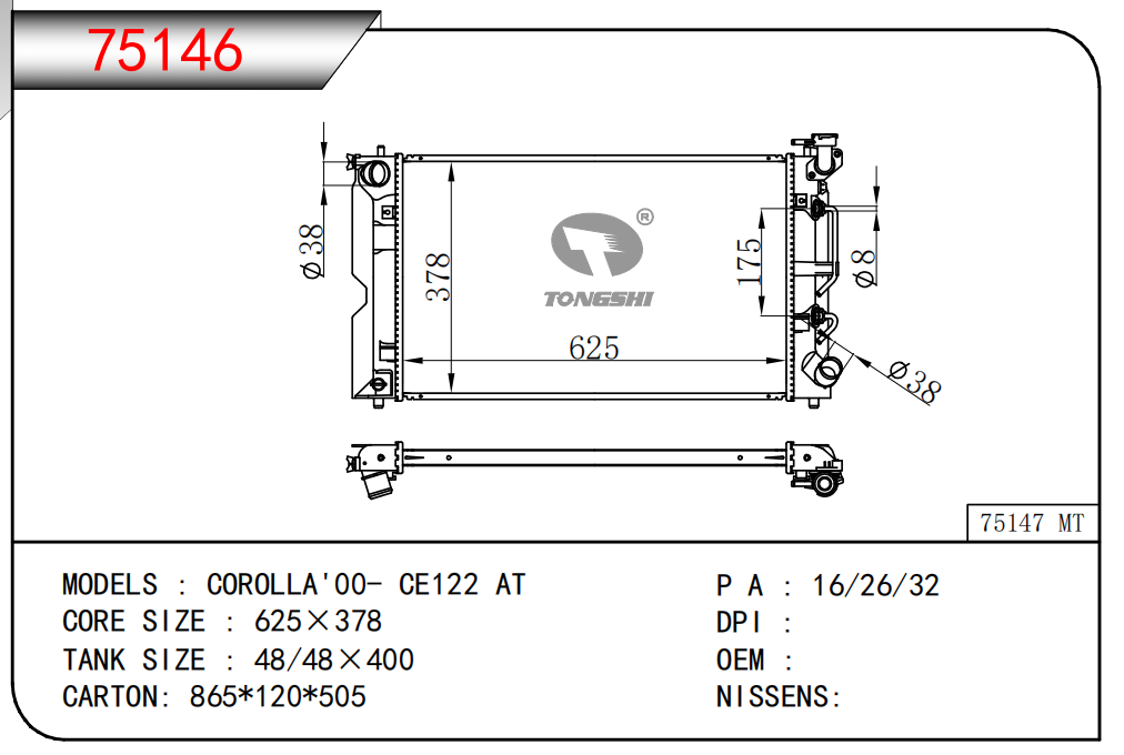 適用于寶馬 E30 320 i 82-93 AT散熱器OEM:1723 825/1719 261
