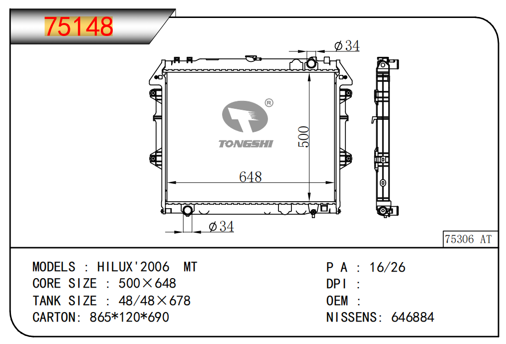 適用于奇瑞瑞虎(新款) MT散熱器 OEM : F1301000B1