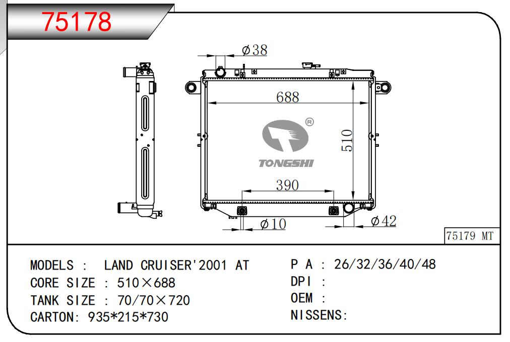 適用于寶馬 E30 320 i 82-93 AT散熱器OEM:1723 825/1719 261