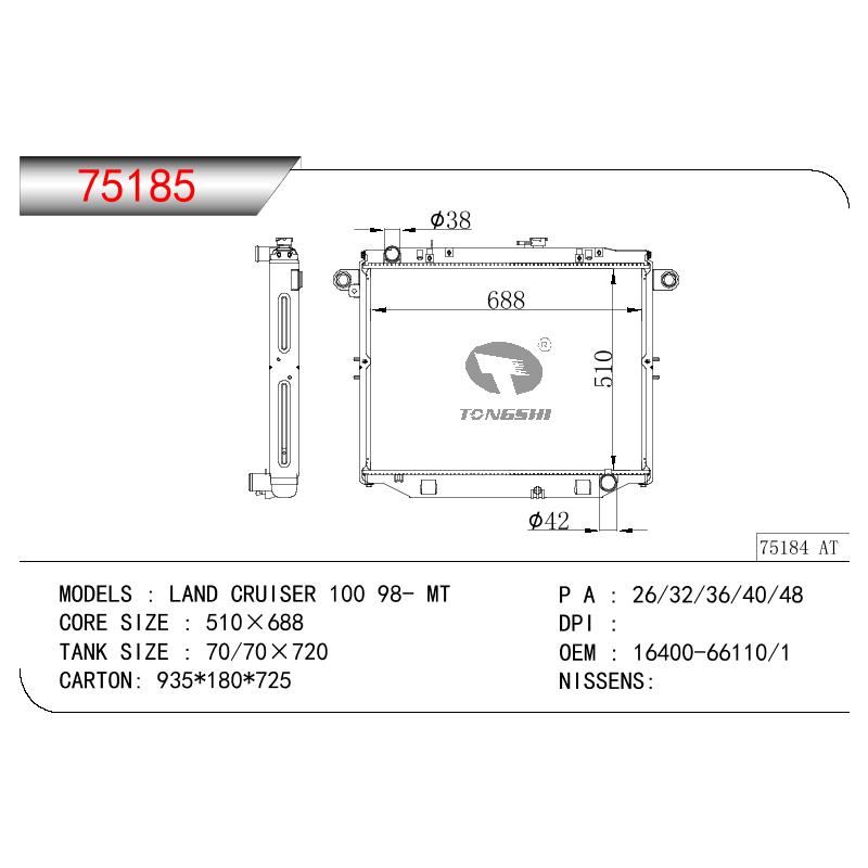 適用于奇瑞瑞虎(新款) MT散熱器 OEM : F1301000B1