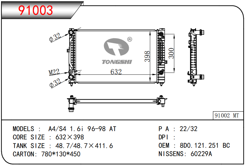 適用于寶馬 E30 320 i 82-93 AT散熱器OEM:1723 825/1719 261