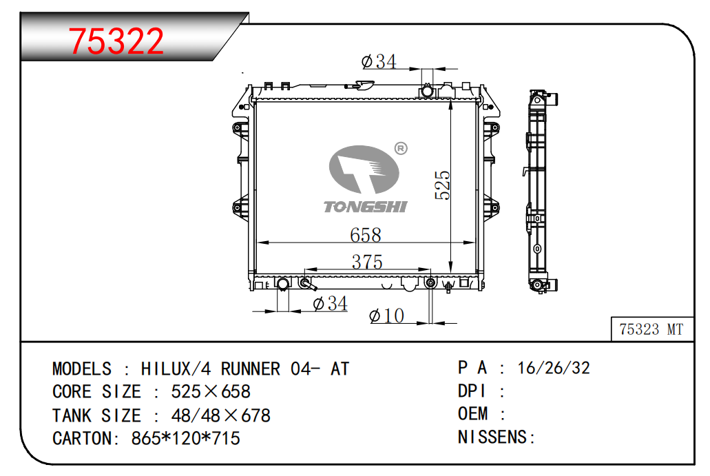 適用于奇瑞瑞虎(新款) MT散熱器 OEM : F1301000B1