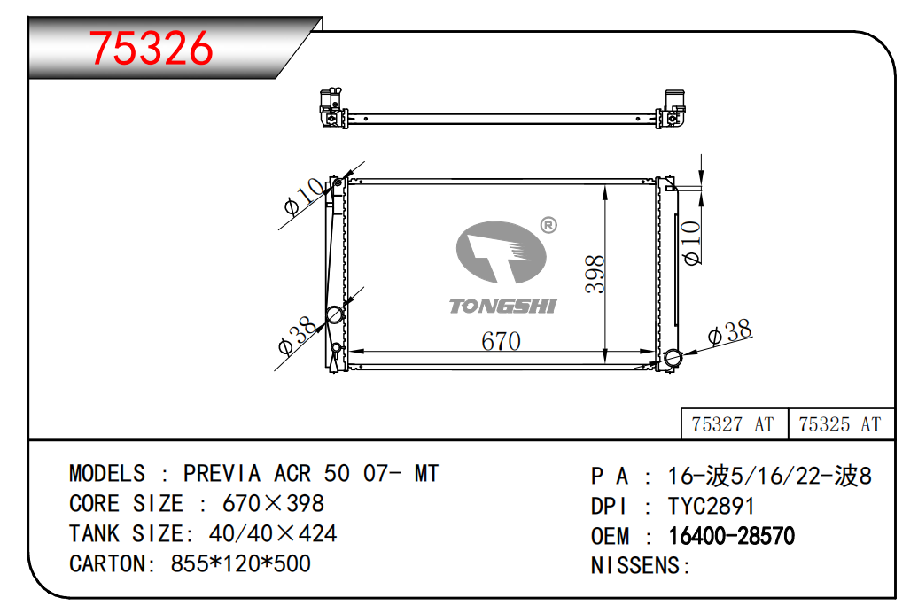 適用于奇瑞瑞虎(新款) MT散熱器 OEM : F1301000B1