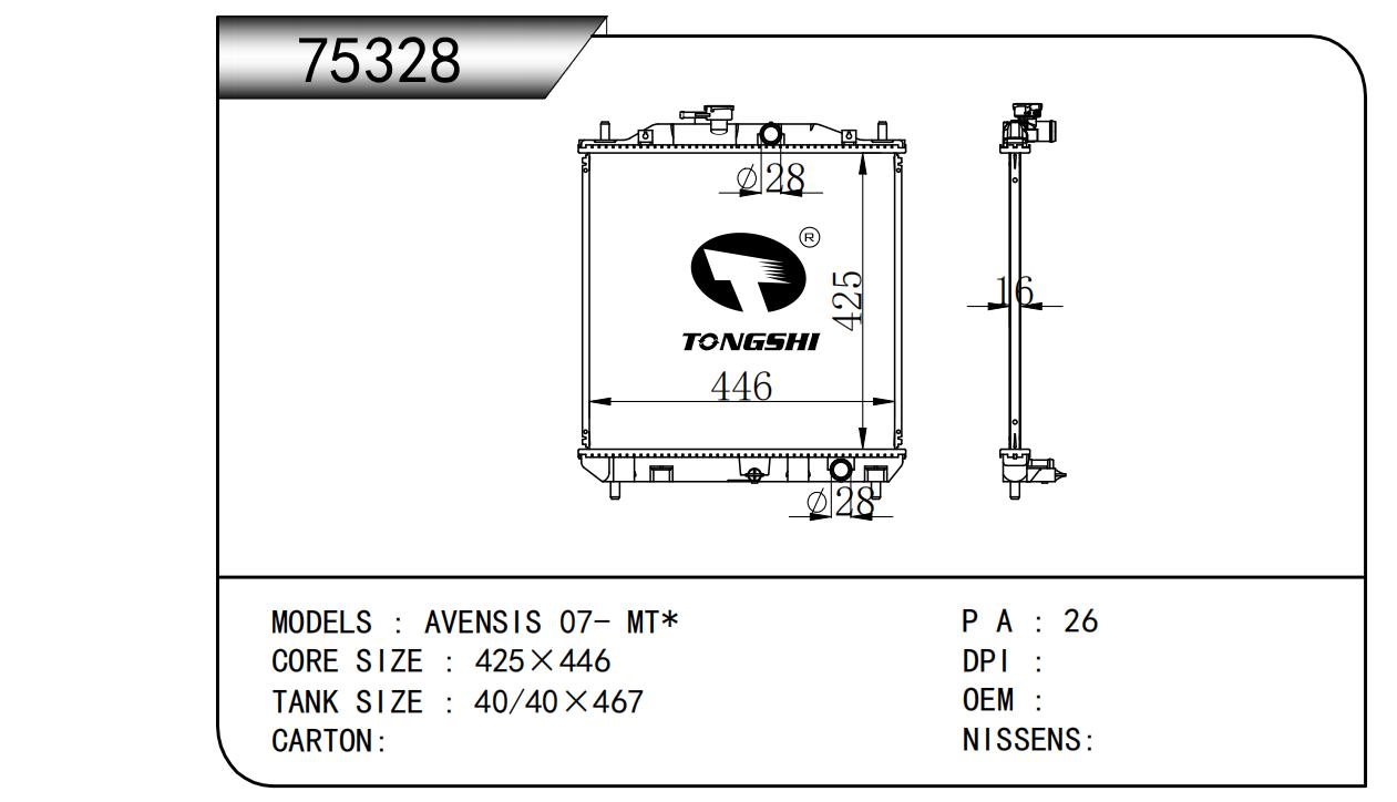 適用于奇瑞瑞虎(新款) MT散熱器 OEM : F1301000B1