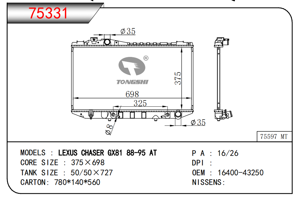 適用于寶馬 E30 320 i 82-93 AT散熱器OEM:1723 825/1719 261