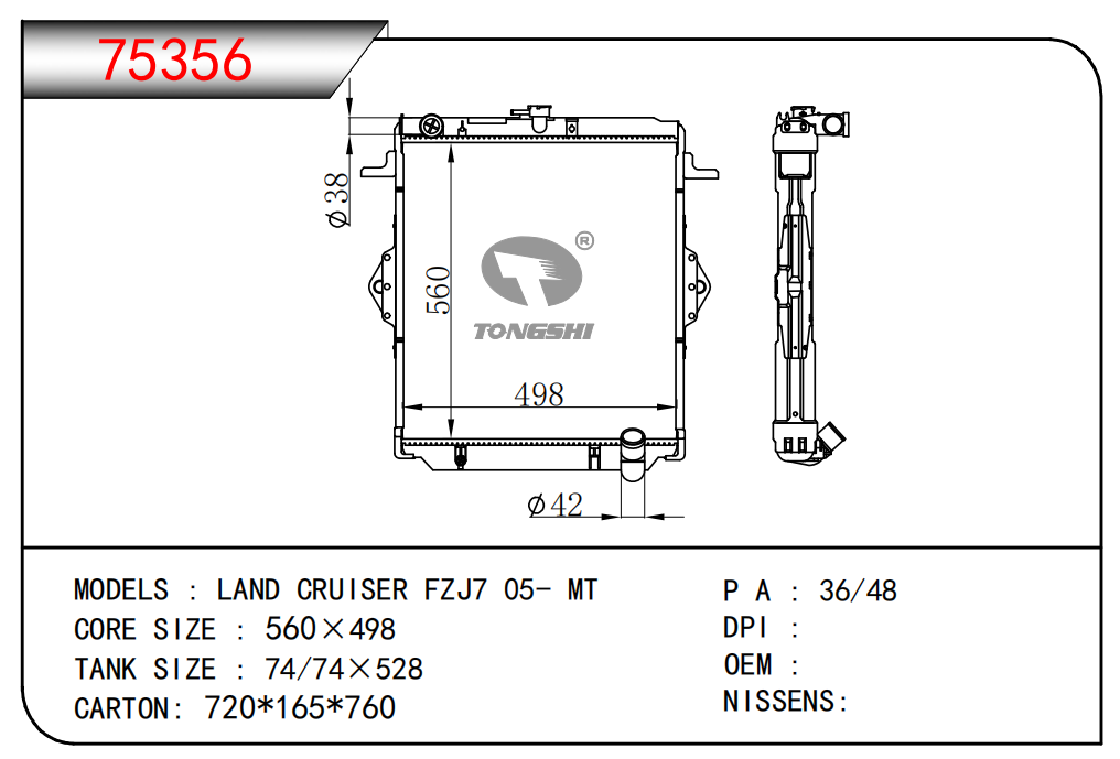 適用于奇瑞瑞虎(新款) MT散熱器 OEM : F1301000B1