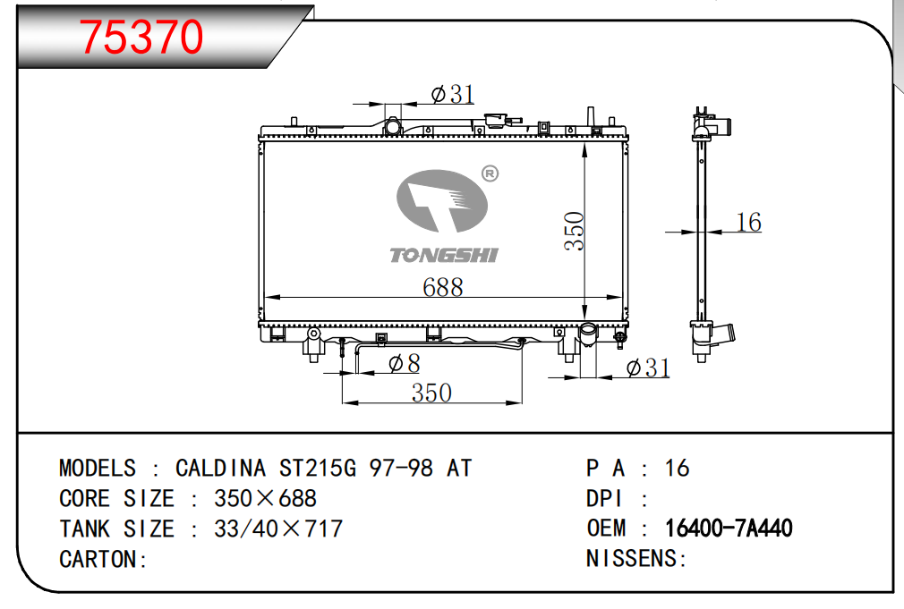 適用于寶馬 E30 320 i 82-93 AT散熱器OEM:1723 825/1719 261