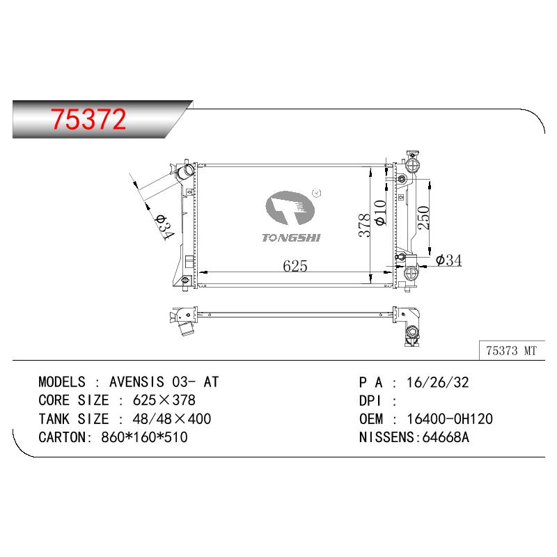 適用于奇瑞瑞虎(新款) MT散熱器 OEM : F1301000B1
