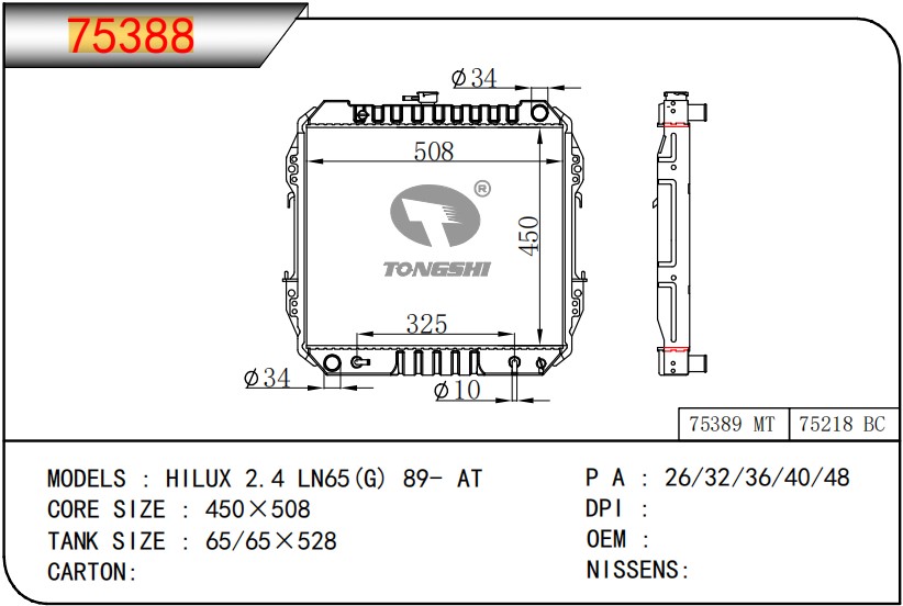 適用于寶馬 E30 320 i 82-93 AT散熱器OEM:1723 825/1719 261