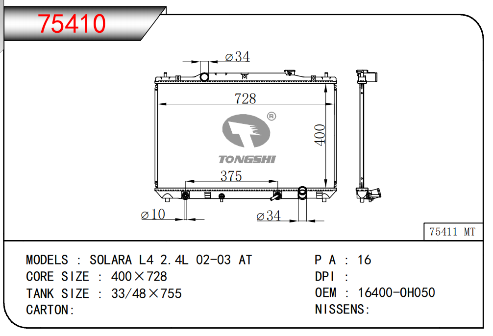 適用于奇瑞瑞虎(新款) MT散熱器 OEM : F1301000B1