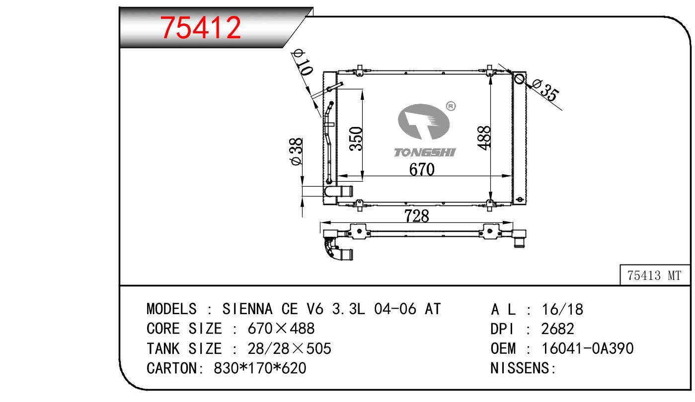 適用于奇瑞瑞虎(新款) MT散熱器 OEM : F1301000B1