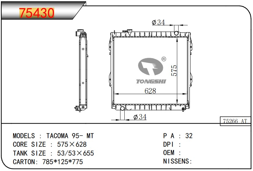 適用于奇瑞瑞虎(新款) MT散熱器 OEM : F1301000B1