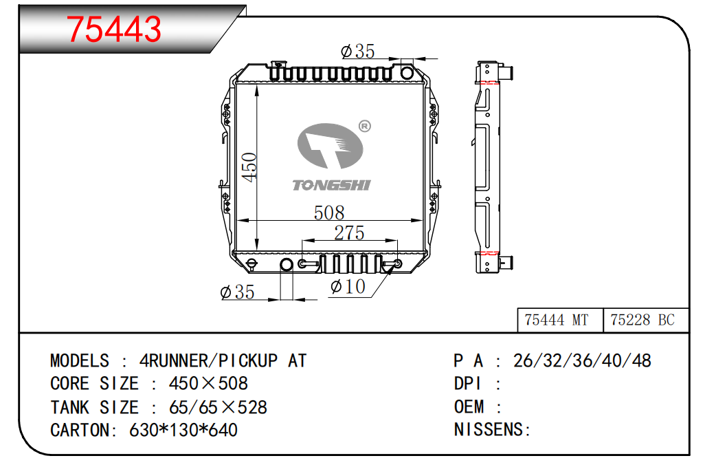 適用于寶馬 E30 320 i 82-93 AT散熱器OEM:1723 825/1719 261