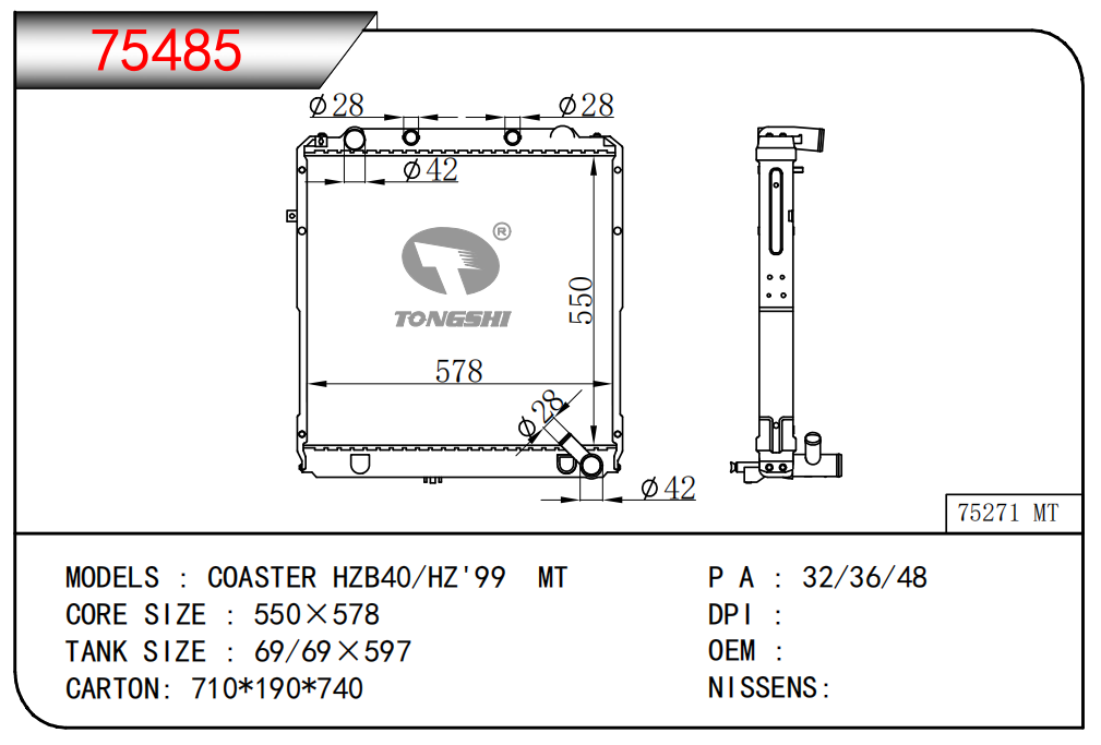 適用于寶馬 E30 320 i 82-93 AT散熱器OEM:1723 825/1719 261