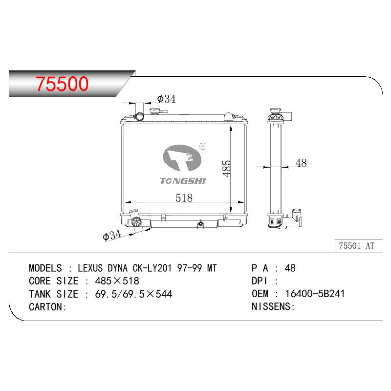 適用于奇瑞瑞虎(新款) MT散熱器 OEM : F1301000B1