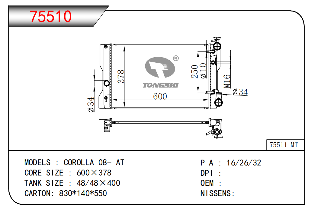 適用于奇瑞瑞虎(新款) MT散熱器 OEM : F1301000B1