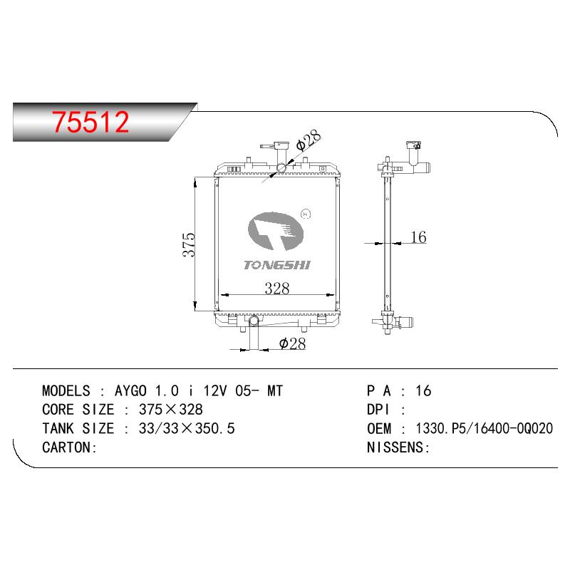 適用于奇瑞瑞虎(新款) MT散熱器 OEM : F1301000B1