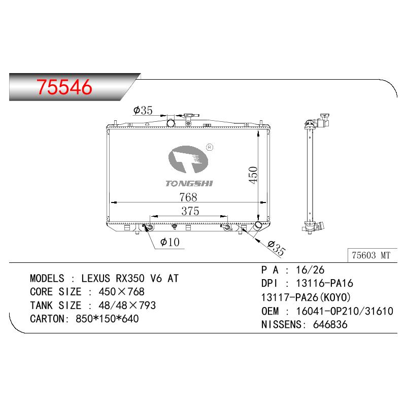 適用于奇瑞瑞虎(新款) MT散熱器 OEM : F1301000B1