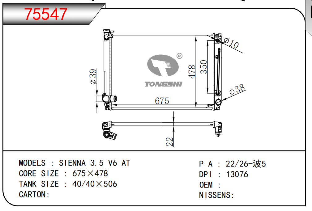 適用于奇瑞瑞虎(新款) MT散熱器 OEM : F1301000B1