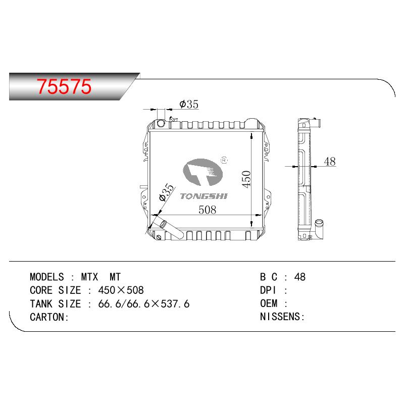 適用于奇瑞瑞虎(新款) MT散熱器 OEM : F1301000B1