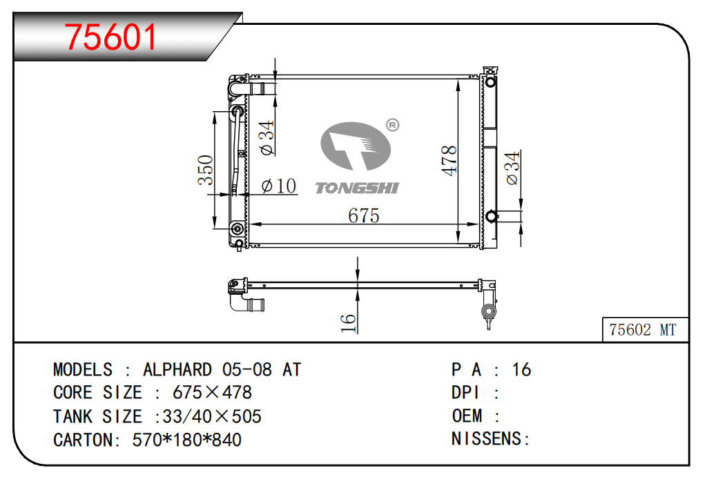 適用于奇瑞瑞虎(新款) MT散熱器 OEM : F1301000B1