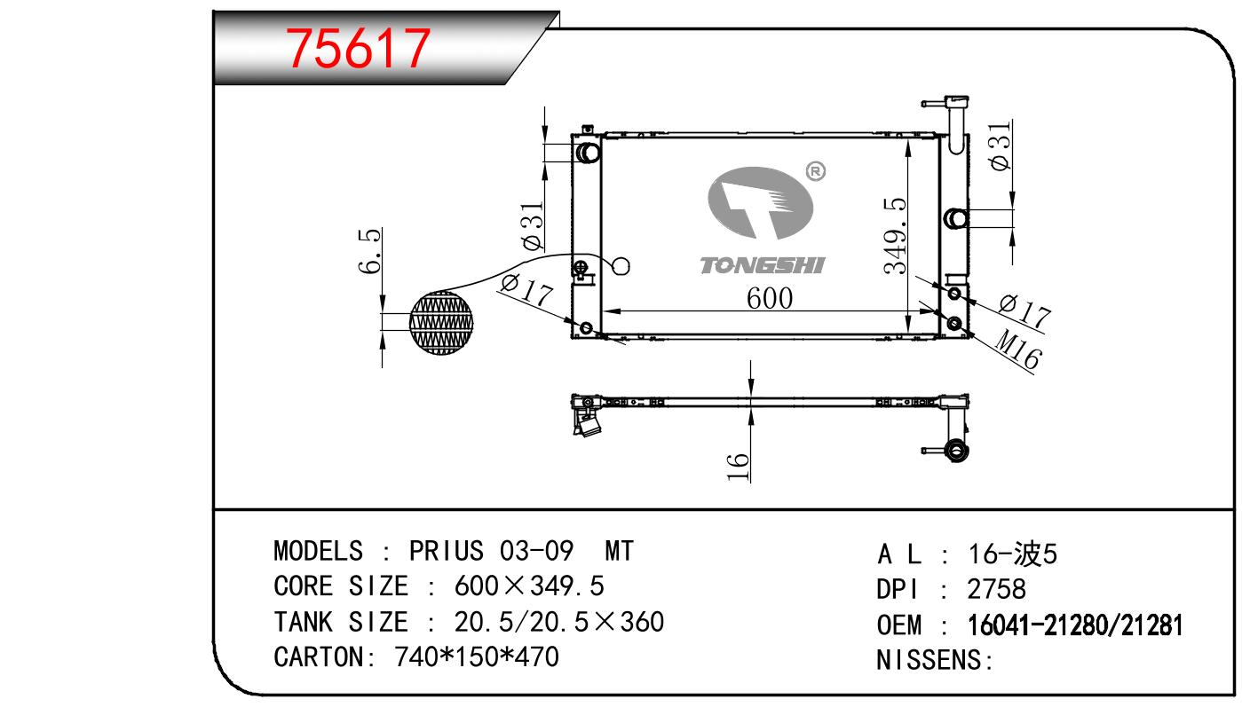 適用于奇瑞瑞虎(新款) MT散熱器 OEM : F1301000B1