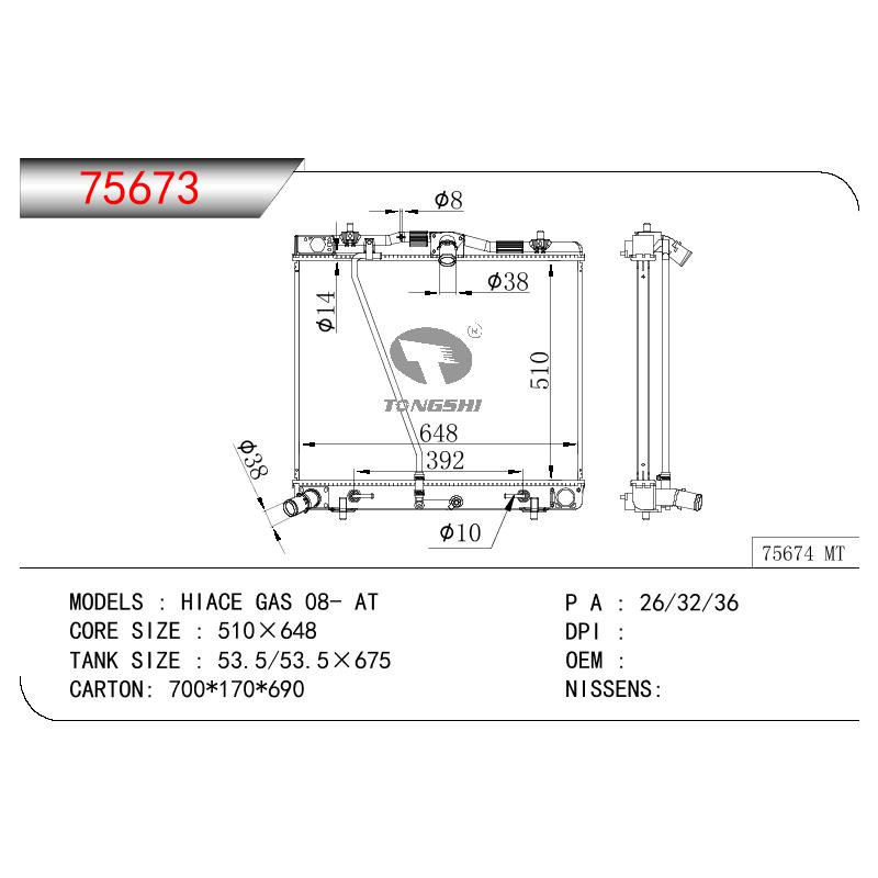 適用于奇瑞瑞虎(新款) MT散熱器 OEM : F1301000B1
