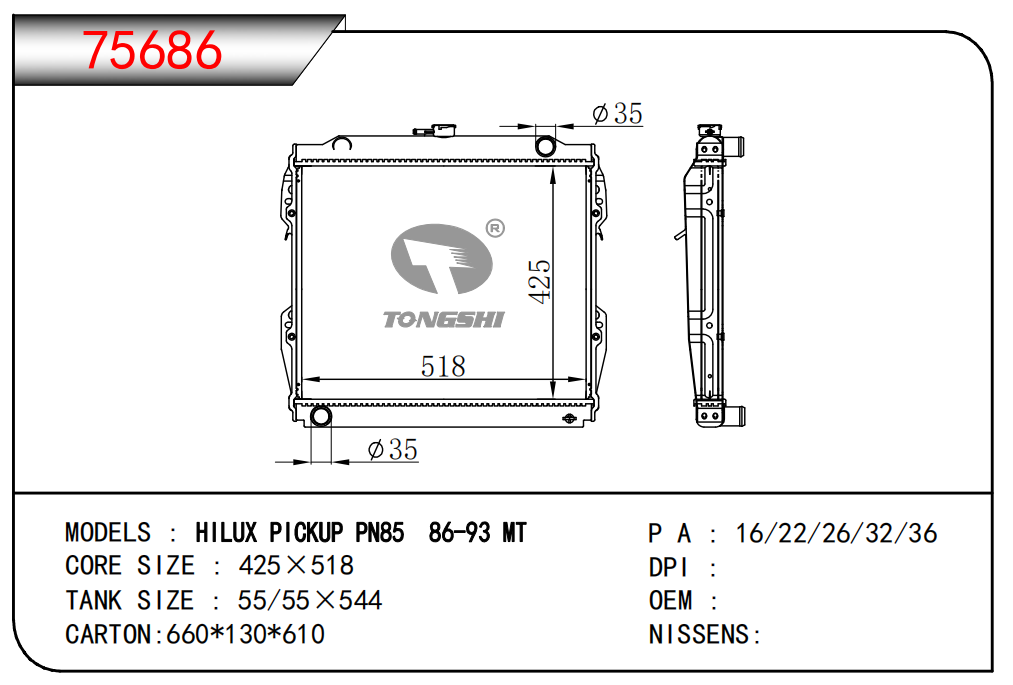 適用于寶馬 E30 320 i 82-93 AT散熱器OEM:1723 825/1719 261