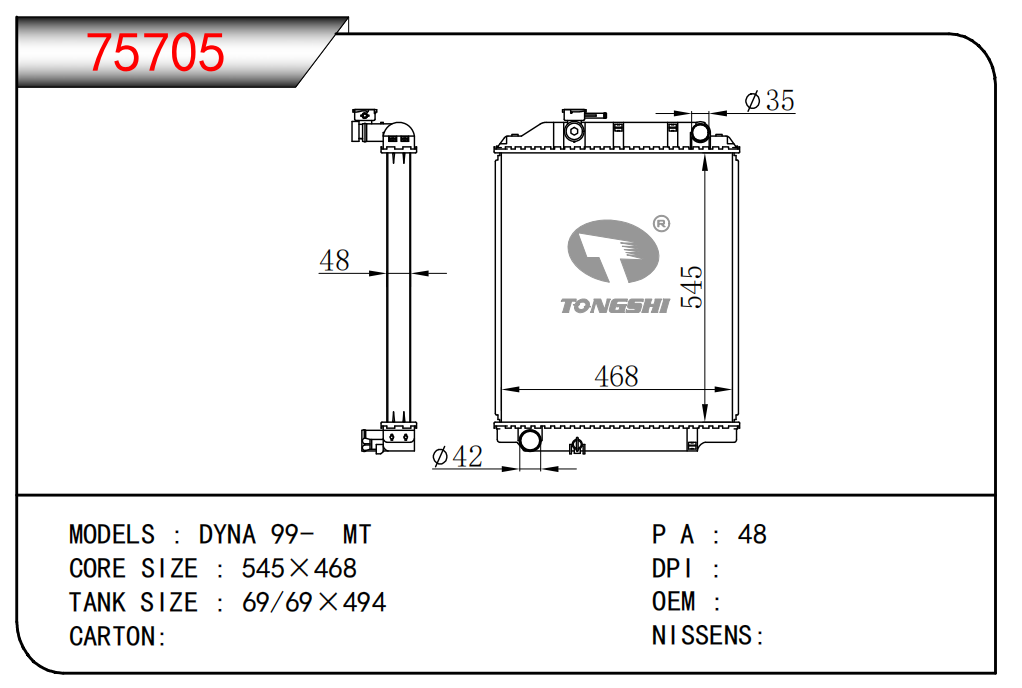 適用于奇瑞瑞虎(新款) MT散熱器 OEM : F1301000B1