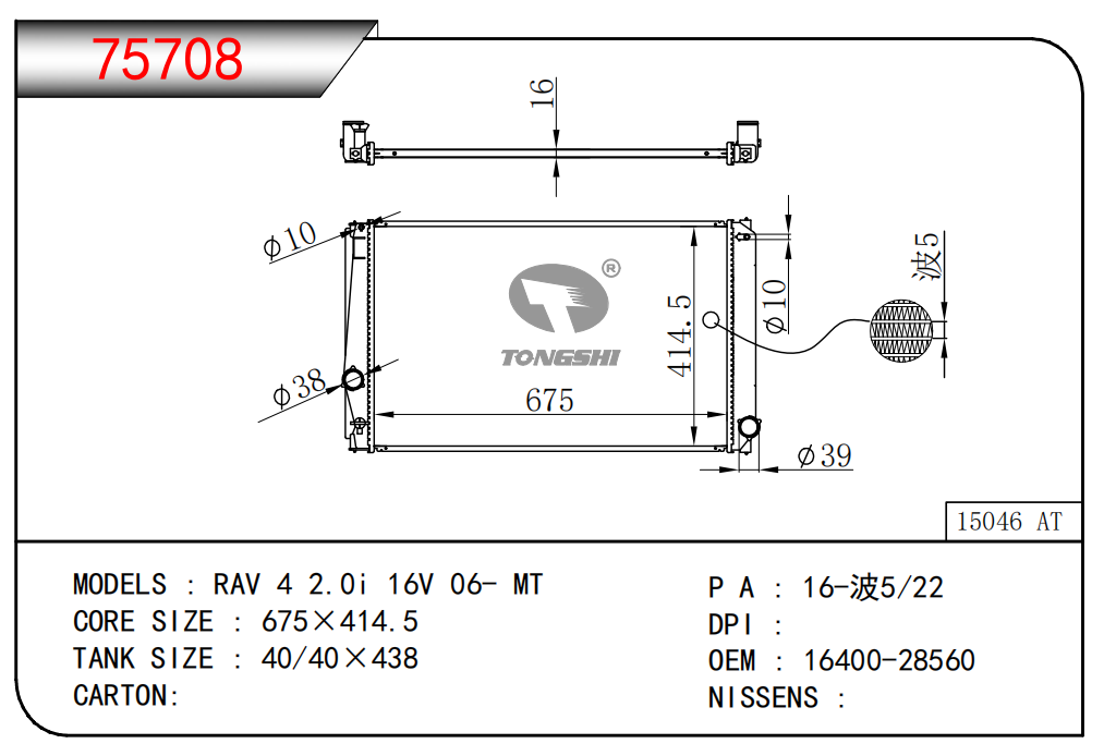 適用于奇瑞瑞虎(新款) MT散熱器 OEM : F1301000B1