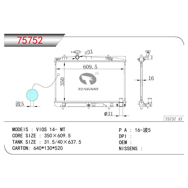 適用于奇瑞瑞虎(新款) MT散熱器 OEM : F1301000B1
